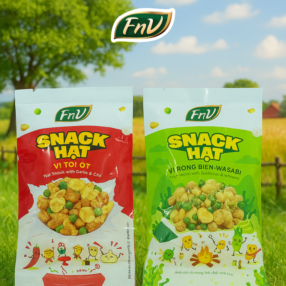 Snack hạt dinh dưỡng FNV 20g – mix hạt bắp, đậu phộng, đậu hà lan, chuối xanh… giòn ngon tự nhiên với 2 hương vị độc đáo: Rong biển Wasabi cay nhẹ và Tỏi ớt đậm đà. Ăn vặt healthy, không chiên ngập dầu, giàu chất xơ, tiện mang theo khi làm việc, học tập hay tập gym.